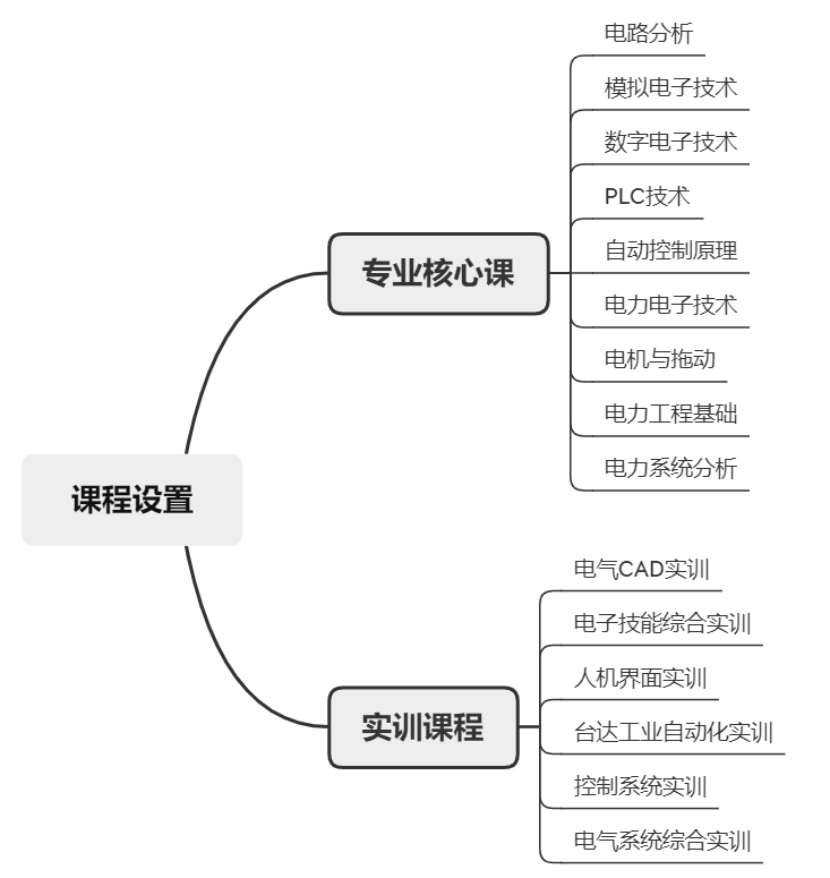 教学内容和教学过程坚持“四结合”——电工技术与电子技术相结合,强电与弱电相结合,计算机技术与电机电气技术使软硬件相结合,由单门课程实验到综合实训使元件与系统相结合。把自动控制、网络控制应用于电力系统上,使学生具备电工电子、系统控制、电气控制、电力系统自动化、电气自动化装置及计算机应用技术等领域的基本技能。