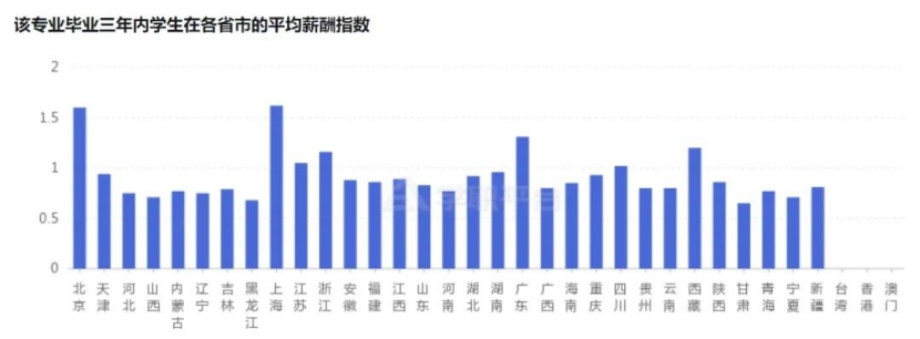 △ 数据来源:学职平台职业调查(该专业学生在某省市的薪酬指数=该专业学生在该省市的平均薪资/该专业学生在全国的平均薪资)