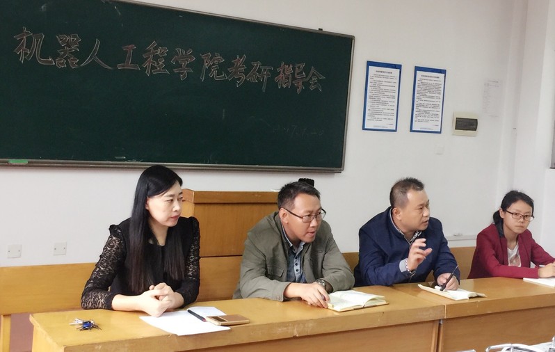 金秋送爽,学子莘莘。又到了一年一度应届毕业生研生考试预报名的节点,为了正确引导2014级毕业生能够准确报考理想院校、取得理想成绩,机器人工程学院以刘显忠副院长为组长,专门成立了“考研指导小组”,由王振力副院长带领具有考研指导经验的计京鸿、王书侠、张娜、杨丽莉等老师构成专业课指导小组,于2017年9月18日在教六107室举行了考研指导大会。