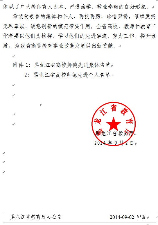 关于表彰全省高校师德先进集体和先进个人的通知