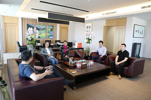 走访过程中,郭洪超校友陪同一行人员参观了企业并进行亲切会谈。会谈中,魏可霏等对郭洪超校友取得的成就表示祝贺,同时针对我校25周年校庆相关活动安排、大学生双创工作进展、大学生双创实习实践基地挂牌等工作与郭洪超校友进行了深入交流,并达成共识。