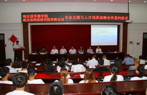 黑龙江省焊接协会副秘书长方乃文博士向与会领导介绍公司整体情况,关晓冬副校长就双方专业共建与人才培养战略合作方案进行了详细介绍。