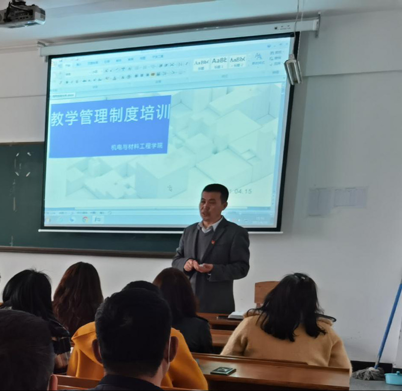 4月15日下午,机电与材料工程学院在教四409召开“教学管理制度解读”培训会。校长助理兼机电学院院长李长威、副院长吴犇、各系主任、学院专职教师参加此次培训会议。