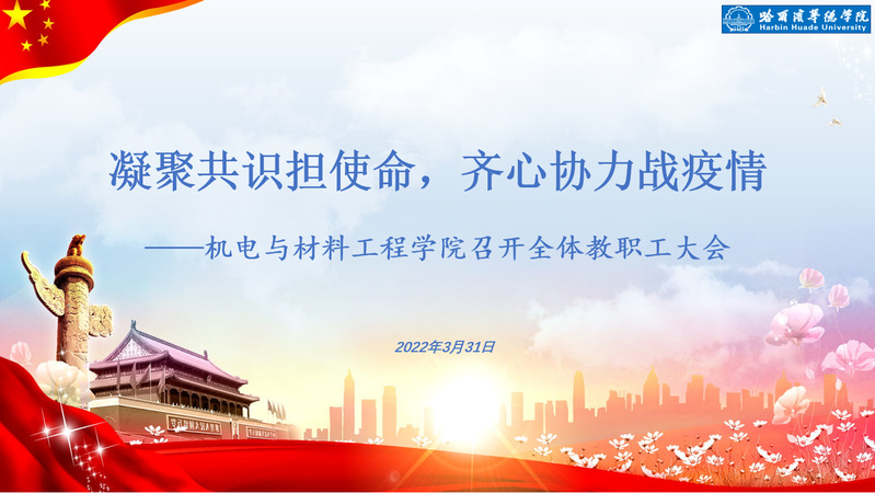 3月31日,机电与材料工程学院召开“凝聚共识担使命,齐心协力战疫情”全院教职工大会。学校副校长兼机电学院院长李长威、学院党总支书记王郁黎、副院长吴犇及全体教职工参会。会议由院办公室副主任兼团总支书记杨志承主持。