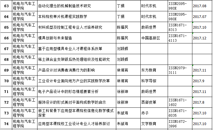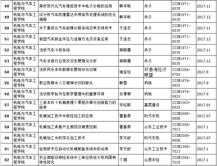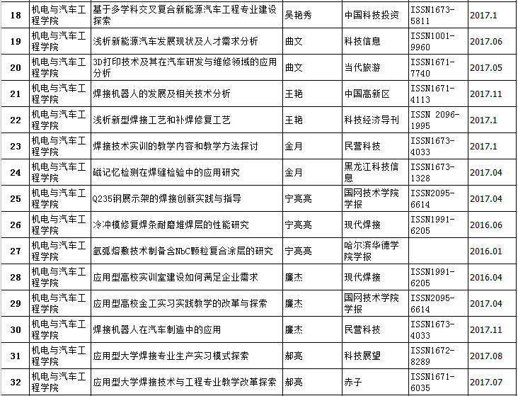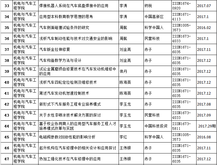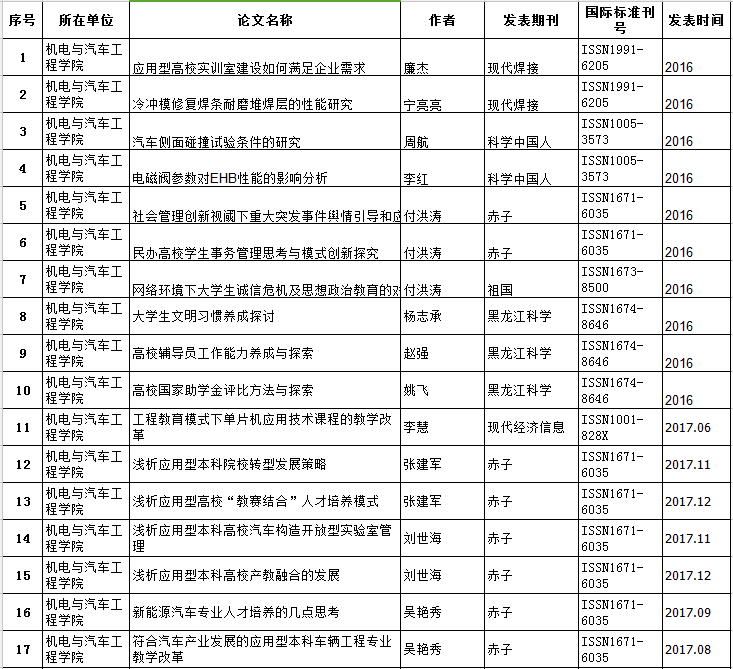 机电与汽车工程学院2016-2017年教师发表论文情况统计表