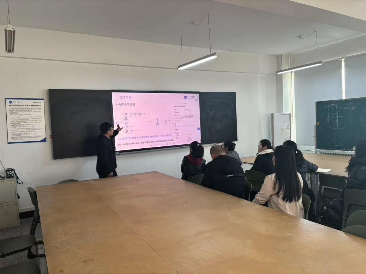 常秋实结合 “煤石子智能收集及转运系统论证及概要方案” 等实际项目,从 “项目策划—立项申报—执行监控—结题验收” 四大阶段展开系统讲解。重点强调项目策划中技术论证、合同类型选择的关键作用,通过对比《技术开发合同》与《技术服务合同》的适用场景及经费分配差异,指导教师精准匹配项目需求。