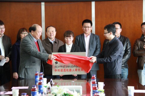 2016年4月8日,我校与黑龙江中科诺晟自动化设备有限公司于行政楼第一会议室,为“澳门电子pg游戏官网中科诺晟机器人研究所”举行了校企合作签约暨揭牌仪式。黑龙江省科技厅生产力促进中心主任常国辉、澳门电子pg游戏官网校长顾德库、副校长曲伟建、黑龙江省中科诺晟自动化设备有限公司总经理赵冬及我校相关负责人员参加了此次签约揭牌仪式。