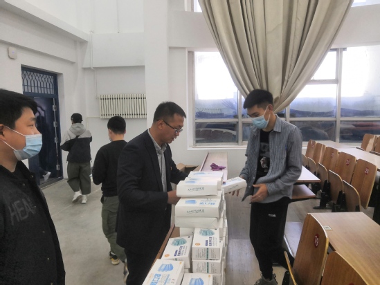 最后,刘张副院长向61名贫困学子逐一发放防疫口罩,共计发放口罩1220只。此次活动,让贫困学子感受到学校对他们的关爱的同时,也使他们提高了疫情防控意识。同学们表示一定会重视疫情防控常态化,刻苦学习,努力进取,用优异的成绩回报学校、回报社会。