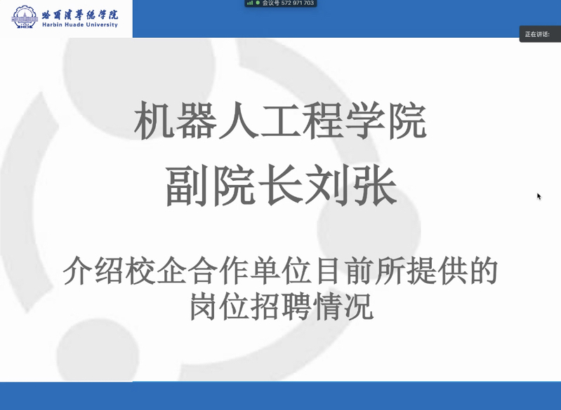 副院长刘张详细介绍了美的集团无锡小天鹅电器有限公司和哈尔滨九洲电气股份有限公司两家校企合作单位目前所提供的岗位招聘情况。