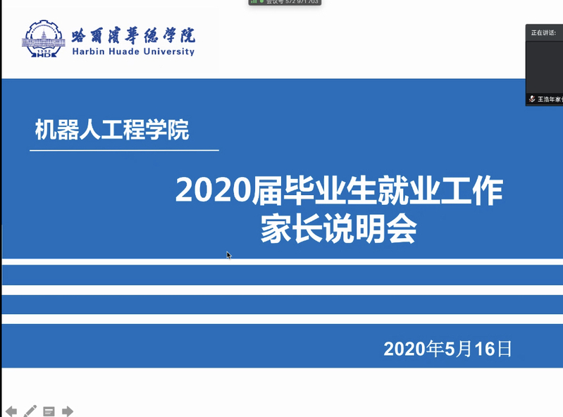 为做好我院2020届毕业生就业工作,加强对学生求职就业中的指导与帮助。5月16日下午,机器人工程学院召开2020届毕业生就业工作家长说明会。学校就业指导中心主任张有承、学院院长刘显忠、副院长王振力、刘张、全体辅导员及2020届部分毕业生家长参加会议,会议由学院2016级辅导员、就业指导教师郑义主持。