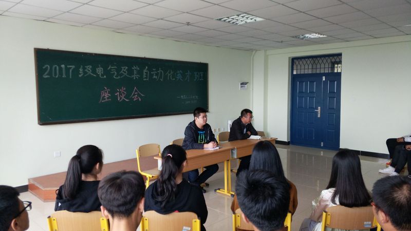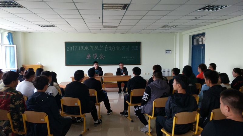 为全面了解电气工程及其自动化(英才班)学生入学以来的学习、生活、思想状态,机器人工程学院于9月19日上午9点30分在教五512教室召开“2017级电气工程及其自动化(英才班)座谈会”,会议由学生工作负责人刘张主持,辅导员王韩笑及1708201、1708202两个班级全体学生参加此次会议。