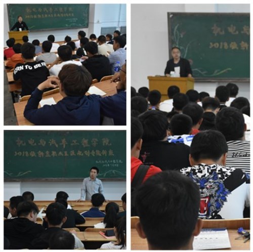 为帮助学院2018级新生更快更好的适应大学生活,制定大学目标,有计划有步骤的完成学业,机电与汽车工程学院于9月14日下午分别在第二教学楼阶梯101、102教室开展2018级新生职业生涯规划专题讲座。职业技术学院院长助理张碧莹、机电学院副院长周启新出席,职业技术学院及机电学院相关教师参加会议,学院全体2018级新生聆听了专题讲座。