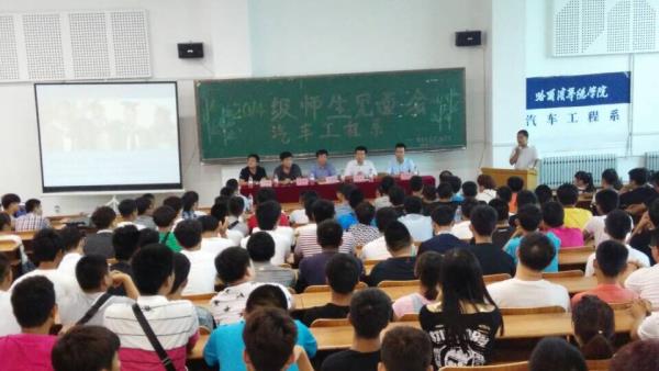 9月2日,我院在第二教学楼J102教室开展2014级新生入学教育活动之:师生见面会。此次师生见面会共分两场次,副校长邓维娜;我院常务副院长李长威;校特聘专家、博士生导师于建国;副院长吴柏宇、付洪涛;机电工程系副主任孙立峰;材料工程系副主任杨德云;汽车工程系副主任宁士君及分院各教研室教师、全体辅导员出席,分院2014级全体学生参加会议,会议由分院院办副主任、团总支负责人范雪阳主持。