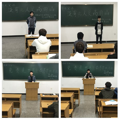 为进一步调动学生课前演讲的积极性,提高演讲质量,机电与汽车工程学院在践行“课前五分钟演讲”这一品牌中创新工作方法,多渠道、多形式开展此项活动,3月27日起,利用晚自习期间在2016级试点开展“课前五分钟演讲”对抗赛和即兴演讲活动。