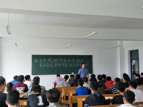 6月21日,机电与汽车工程学院在第四教学楼407教室召开2017年春季学期末食品安全、校园安全、诚信教育大会,学院副院长付洪涛出席、全体辅导员出席,各小班学生代表参加本次会议。