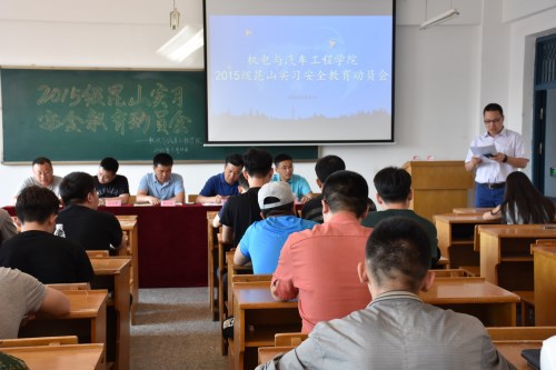 5月31日,机电与汽车工程学院于第四教学楼404教室召开2015级昆山实习安全教育动员会。校长助理兼机电学学院院长李长威、党总支书记付洪涛、及相关教师出席。