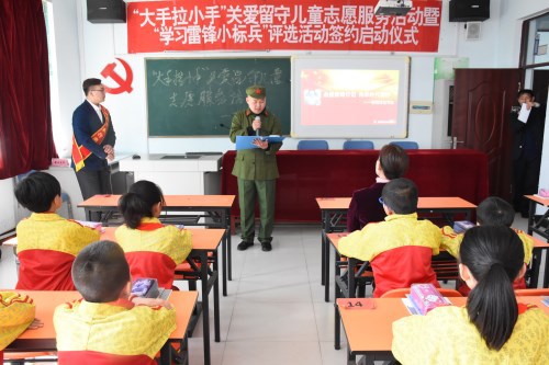为积极响应校团委号召,全面落实《关于开展我校2018年寒假社会实践活动的通知》,3月27日,机电与汽车工程学院团总支赴绥化市青冈镇中心小学校开展“大手拉小手”关爱留守儿童志愿服务活动暨“学习雷锋小标兵”评选活动签约启动仪式。青冈镇中心小学校校长王玉秋及学校教师、我校机电学院党总支书记王郁黎、团总支书记杨志承及学院六名团员青年代表、40名留守儿童参加此次活动。