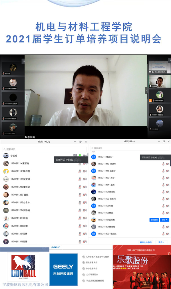 最后,李长威助理重点介绍了如何组建2021届毕业生校企合作订单班,并结合我院以往吉利集团、台达集团、乐歌集团等企业订单班学员发展实例,深入分析校企合作订单班的优势,鼓励2021届毕业生积极争取加入订单班的机会,为个人的职业发展打下良好的就业基础,从而全面启动2021届毕业生就业工作