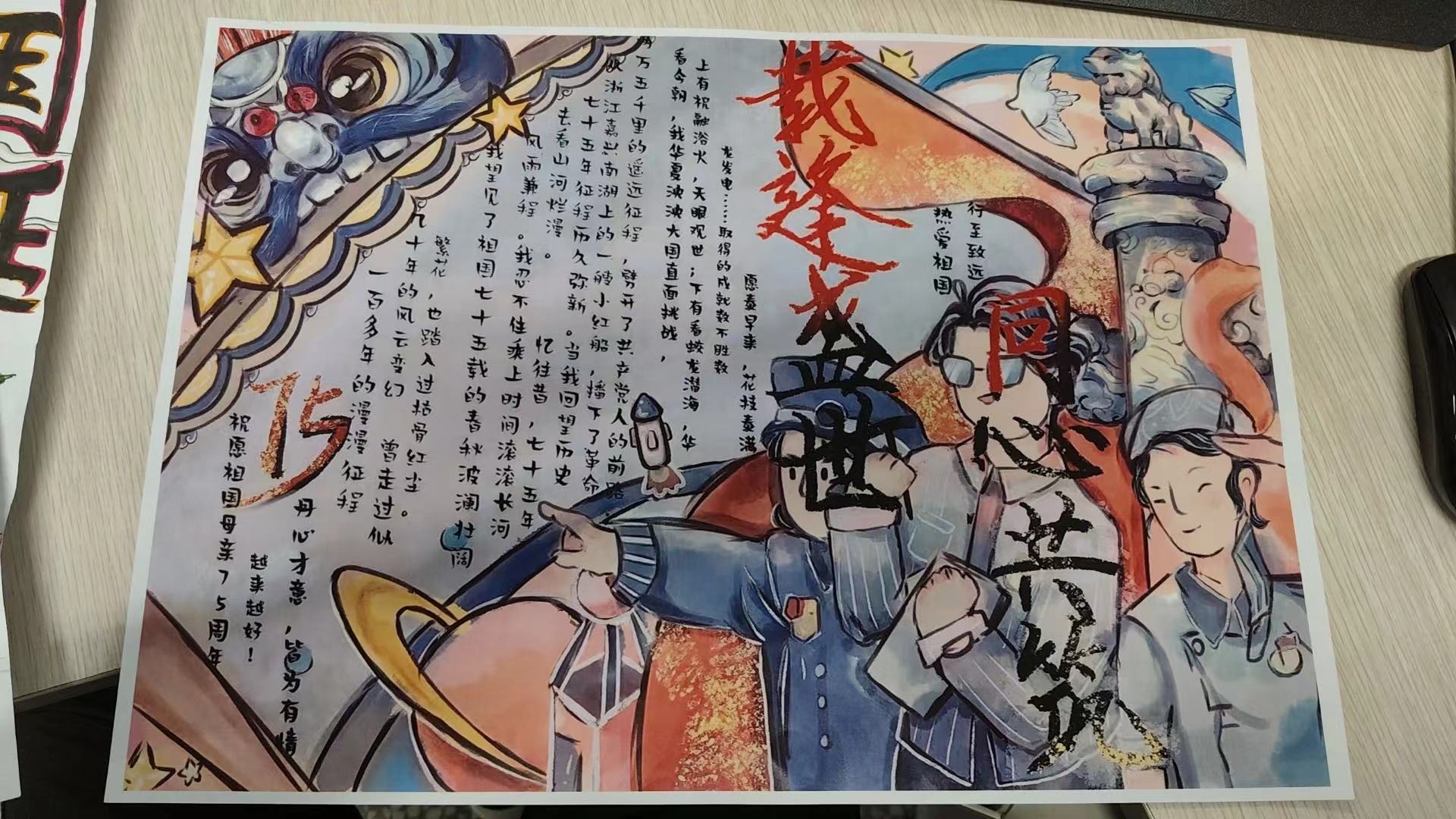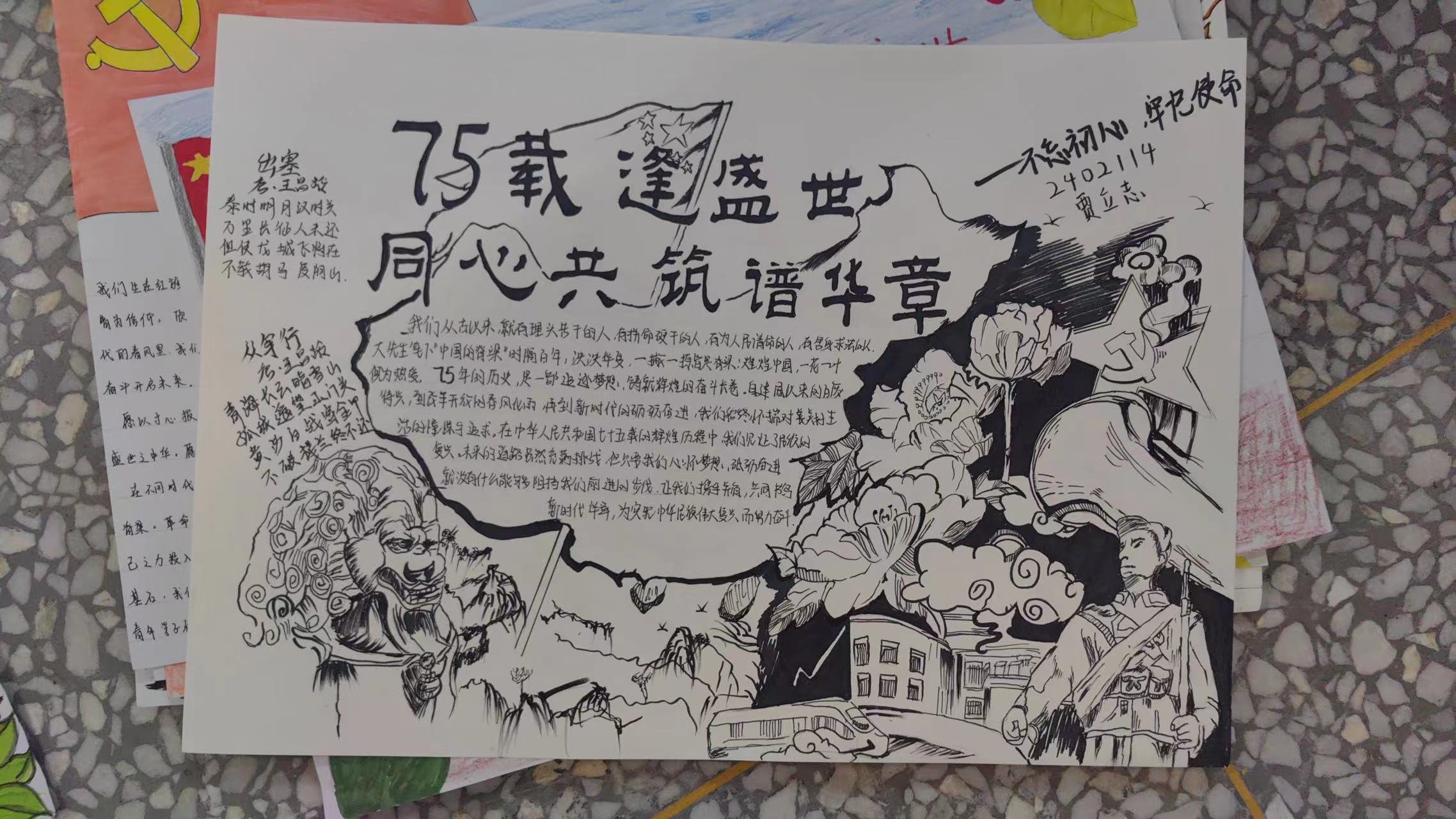 为切实推进爱国主义教育、国防特色教育在校园深入开展,持续擦亮英雄城红色底色,教育引导广大青年结合自身成长实际唱响爱国主义主旋律,掀起爱国主义主题教育活动热潮,在新中国成立75周年之际,怀着对祖国的深深热爱和对党的崇高敬意,澳门电子pg游戏官网于9月20日至9月26举办了以“75 载逢盛世,同心共筑谱华章”为主题的手抄报绘画大赛。