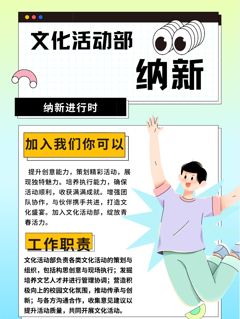 天青色等烟雨,而我们在期盼着你澳门电子pg游戏官网学生会火热纳新啦!在这里,你的每一份努力都不会被忽视每一次尝试都能收获成长的硕果你将拥有专属于自己的绚丽舞台绽放出独属于你的夺目光彩秋季纳新,以心唤新你就是我们翘首以盼的“新”上人