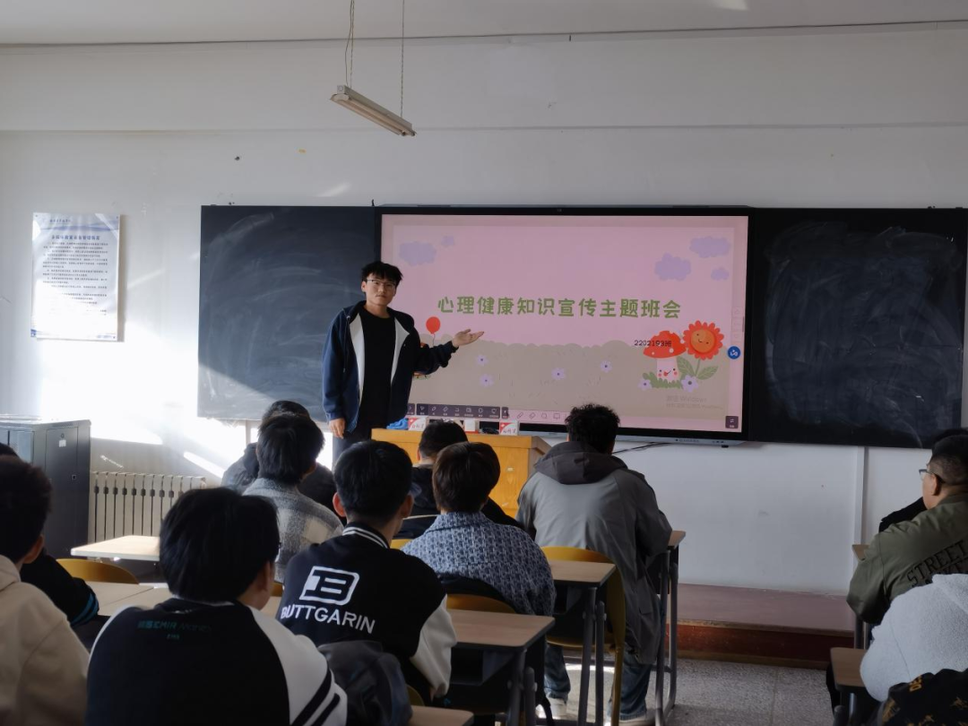 另一主题是心理健康知识的普及。心理健康教育是大学生德育的基础,主题班会的召开能够有效提升学生对于心理健康教育的认知,帮助学生结合自身发展调整心态、积极进取,进而促进心理育人体系在学院落地生根、茁壮成长。
