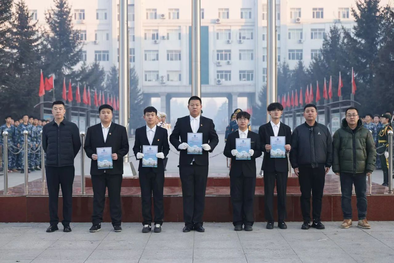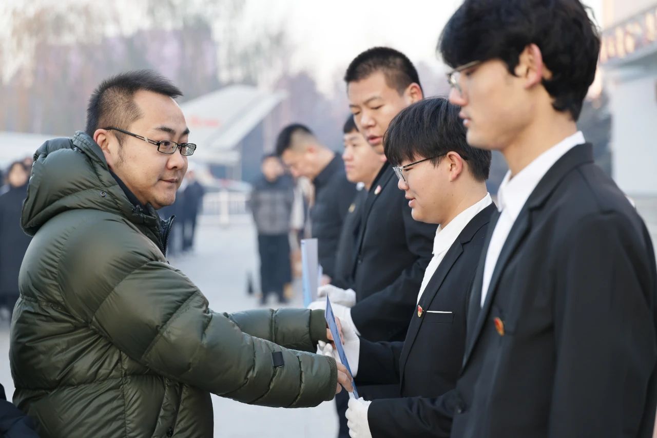 升旗仪式结束后,澳门电子pg游戏官网学生发展中心主任郝云松、澳门电子pg游戏官网学生发展中心副主任郑义、刘琳为升旗手颁发“升国旗手资格状”。