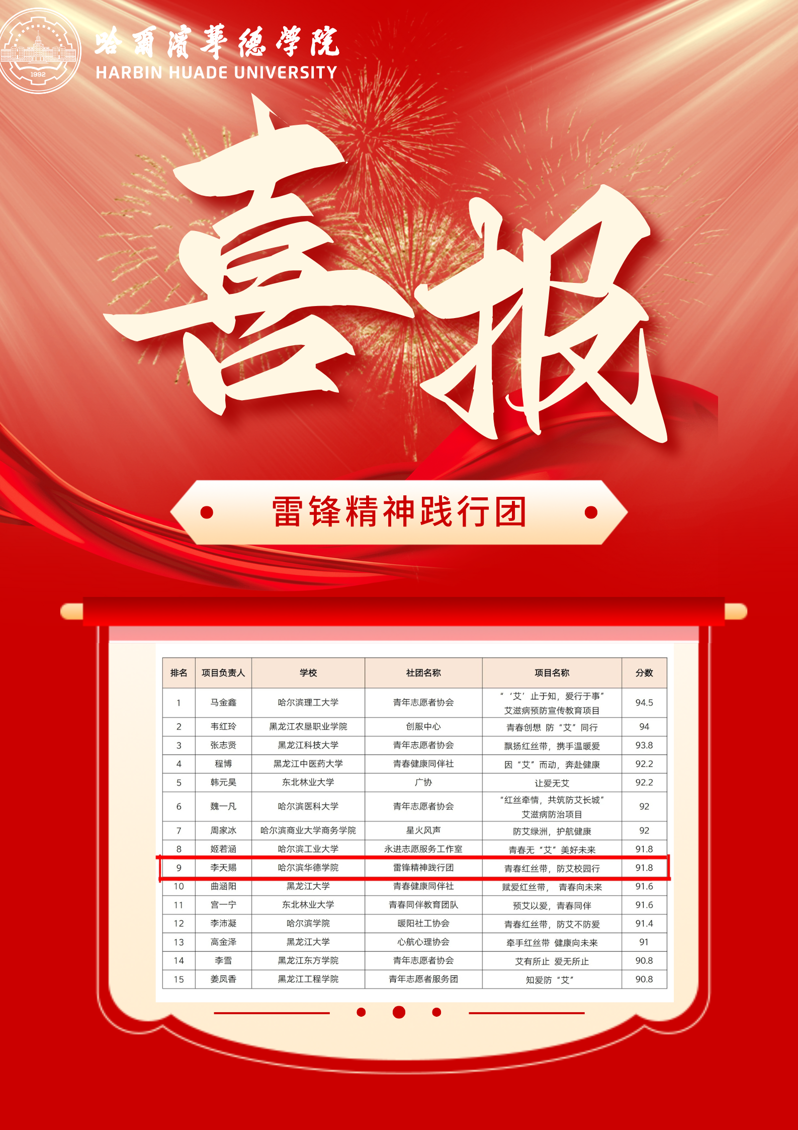 我校“雷锋精神践行团”在大学生社团健康红丝带行动计划项目开展将秉承“志愿奉献,热情关爱,团结高效,服务社会”的精神,协助相关部门、学校宣传普及艾滋病防治知识,倡导人道主义精神,号召在校大学生和其他社会各界人士积极参与艾滋病及其它传染病防治工作。推动青春健康教育工作向纵深发展,为广大青年学生健康成长营造良好的社会环境作出积极贡献。