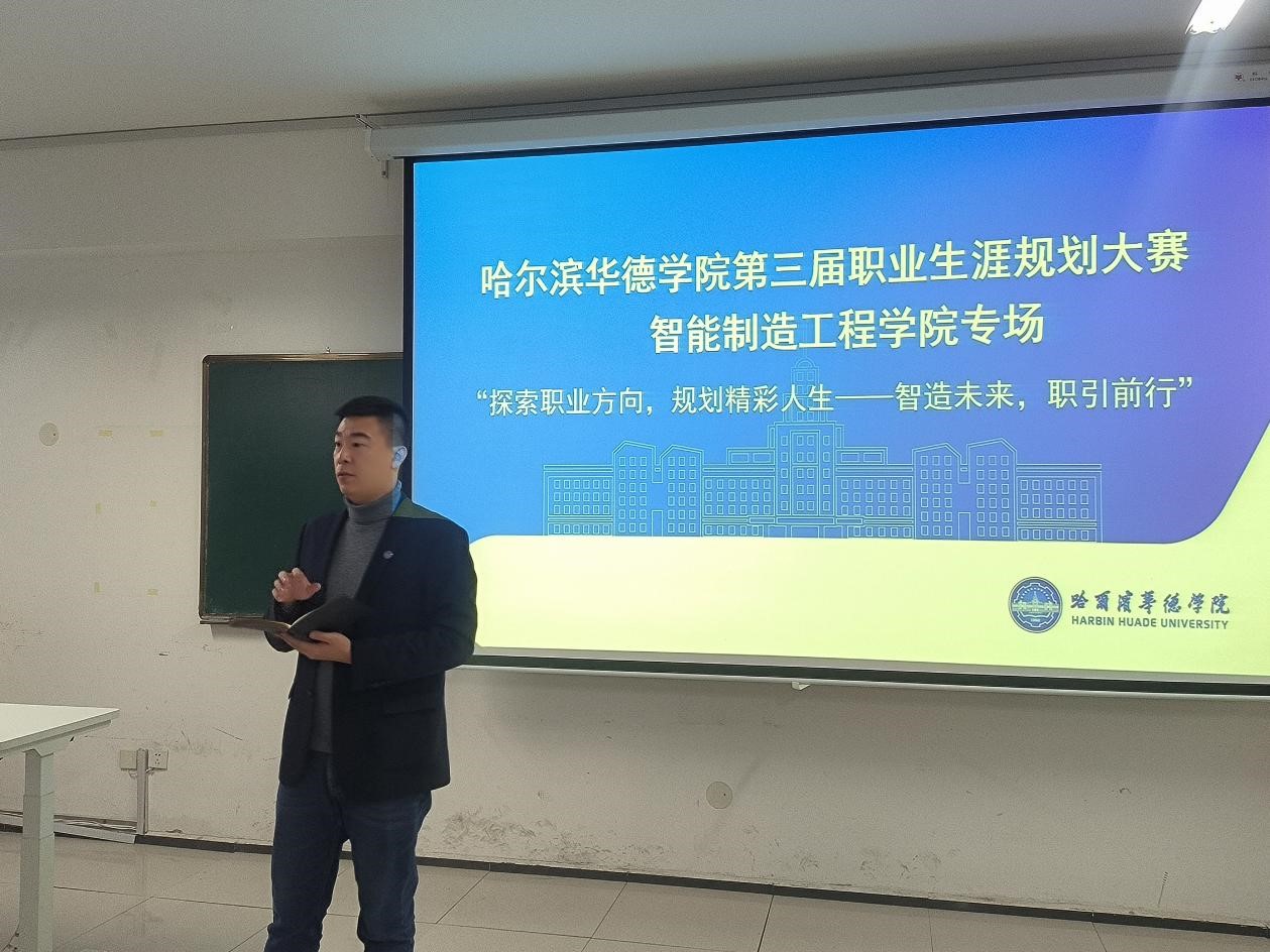 为强化大学生职业生涯规划意识,提高大学生的创新能力、实践能力和就业能力。澳门电子pg游戏官网于11月25日在教四204室举办以职业生涯规划大赛院级选拔赛。本次比赛由2202193班班长杜超主持,院学生发展中心主任郝云松、辅导员段垠旭、李潮勇担任评委。
