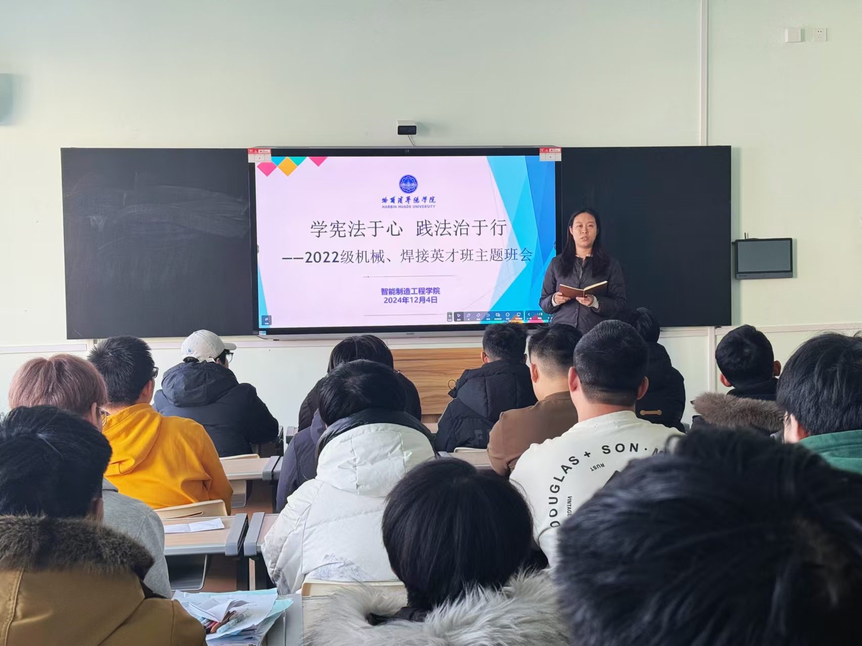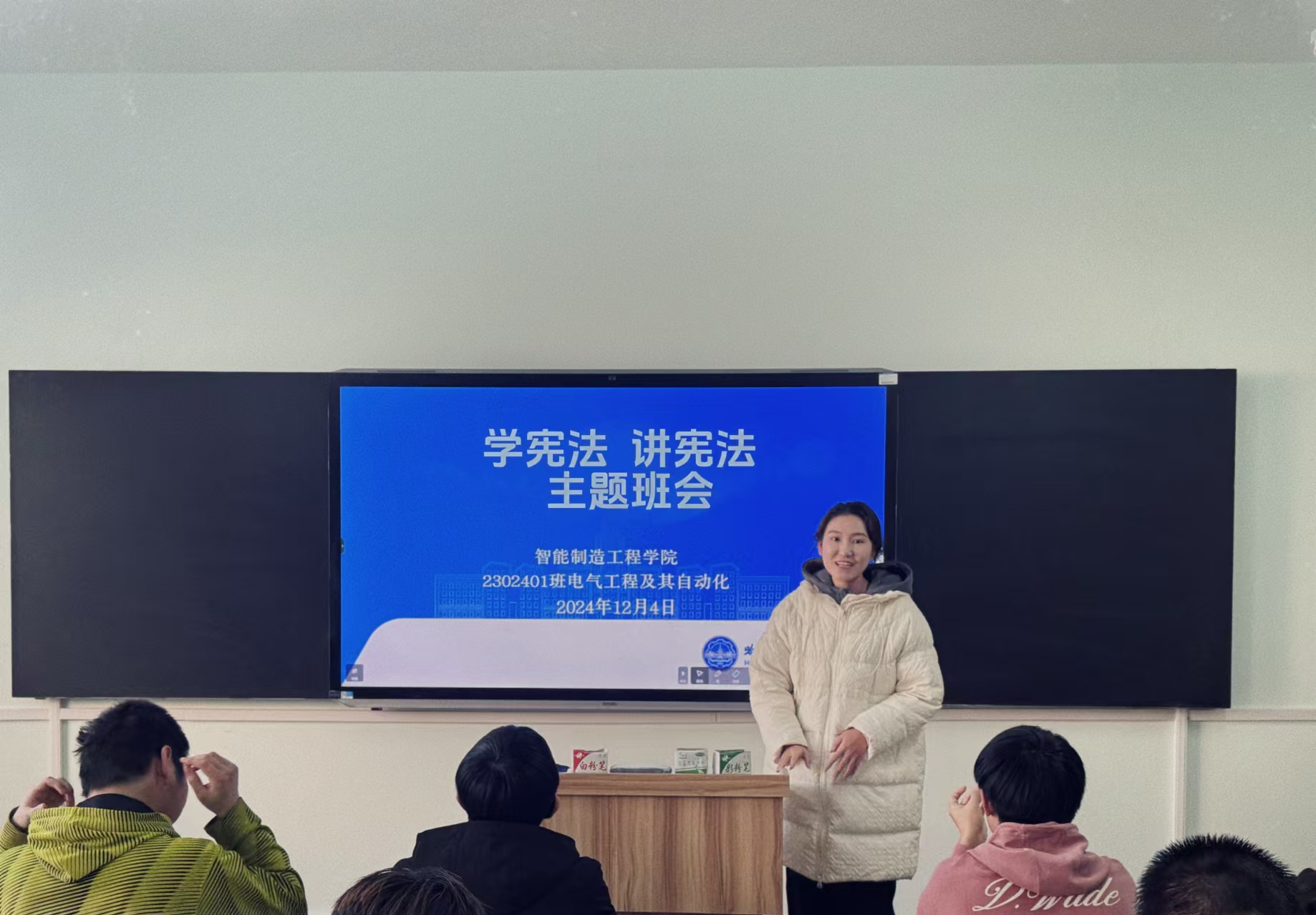 2024年12月4日是我国第十一个国家宪法日,为深入开展宪法学习宣传教育,进一步增强广大师生的法律意识和法制观念。12月4日国家宪法日当天,澳门电子pg游戏官网积极组织开展了“学宪法,讲宪法”主题班会。此次班会覆盖全院各年级,由大一、大二、大三辅导员老师主讲。