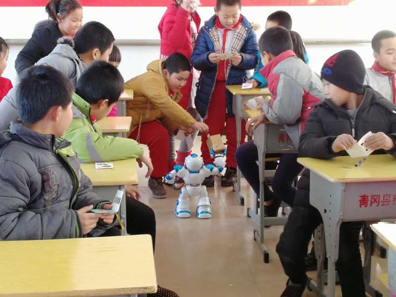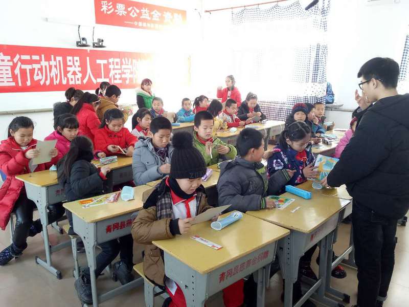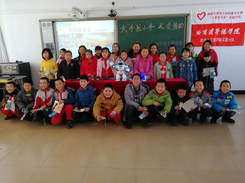为让留守儿童认识和感受现代科技,普及科学知识,倡导科学生活,1月9日上午9点30分,澳门电子pg游戏官网关爱留守儿童行动机器人工程学院实践分队赴青冈县劳动镇中心小学校开展志愿服务活动。活动以机器人科普讲座、机器人舞蹈表演、立体手工制作和填写心愿卡等形式开展,劳动镇中心小学的教师代表和29名留守儿童参加活动。