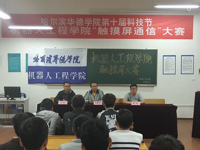 为提高我院学生对科学技术的认知,发掘培养科技创新型人才,促进校园文化发展,机器人工程学院于6月1日在第六教学楼台达自动化实验中心举办了第一届触摸屏技术大赛,学院王振力副院长、学生工作负责人刘张老师、自动化教研室主任李冰老师、及全体辅导员出席并担任本次比赛的评委。