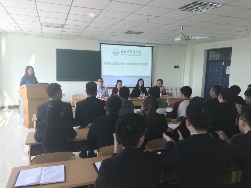 为了加强我院学生干部队伍建设,提高学生干部的思想政治素质和工作能力,明确学生干部的工作任务、工作职责、工作要求,锻炼和塑造一支成绩优、作风好、能力强的学生干部队伍。10月24日,我院在教五512教室举行第一期优秀学生干部培训班开班仪式。副校长、党委副书记邓维娜、校团委书记、学生工作处副处长姜琳、机器人工程学院副院长刘显忠、机器人工程学院学生工作负责人刘张、学院全体辅导员及20名优秀学生干部出席本次开班仪式。仪式由团总支书记刘存艳主持。