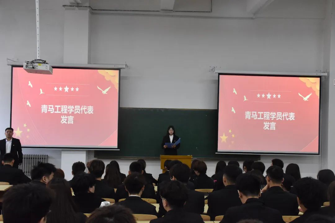 刘潼代表新学员发言,她表示,在未来的学习和生活中,她将与本期全体学员一起不断提升理论素养、筑牢理想信念、践行青春使命,努力成为有理想、敢担当、能吃苦、肯奋斗的时代新人,为强国建设、民族复兴挺膺担当。