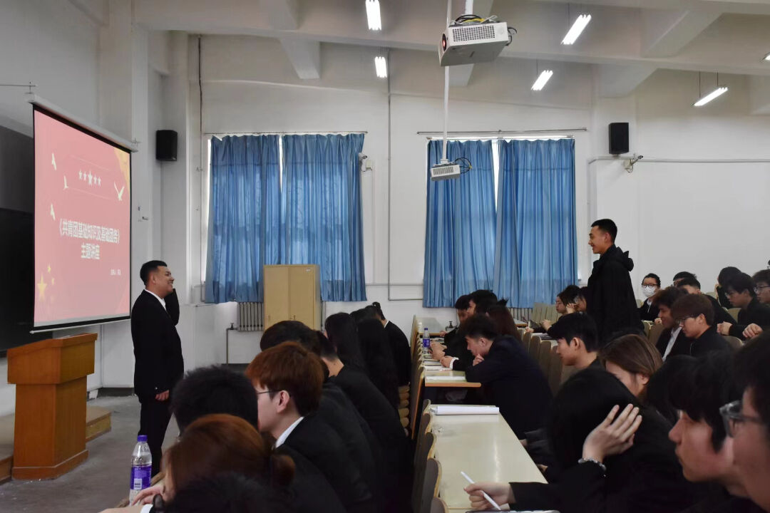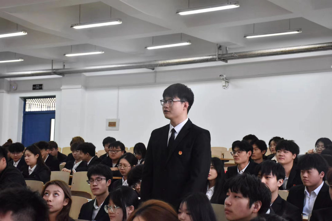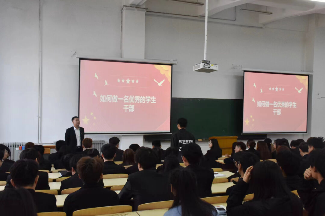 随后,郑义老师针对如何做一名优秀的学生干部话题与现场同学进行探讨互动。他讲到,作为学生干部要做好榜样带头作用。要在思想引领、组织管理、责任担当、实务能力等方面做好提升。要正确认识学生干部身份,增强服务同学的意识,努力学好专业知识,争做有理想、敢担当、能吃苦、肯奋斗的新时代学生干部。