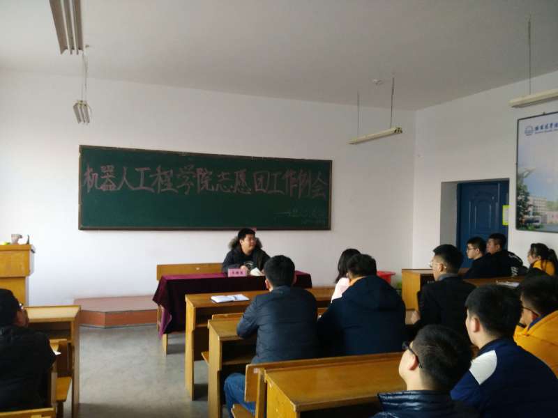 2017年11月16日12:40,机器人工程学院在第一教学楼J117室组织召开校园文化建设大学生志愿团工作例会。会议由志愿团负责人王韩笑主持,机器人工程学院全体志愿团成员参会。