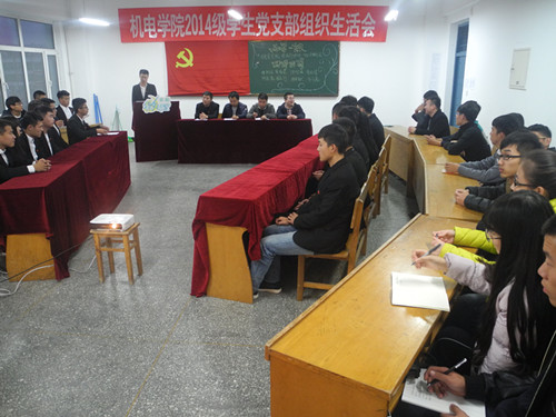 会上,2014级党支部书记姜嵬推出了该支部的特色活动——支部微讲堂。“微讲堂”上他结合我校实际,对合格党员的标准、党员的本质、党性修养的深刻内涵做了深入浅出的剖析。他希望每一位学生党员都应该用实践去捍卫党员的荣光,要时时加强党性修养,处处发挥先锋模范作用,带领同学不断学习理论知识,自觉做符合社会主义价值观的好青年。