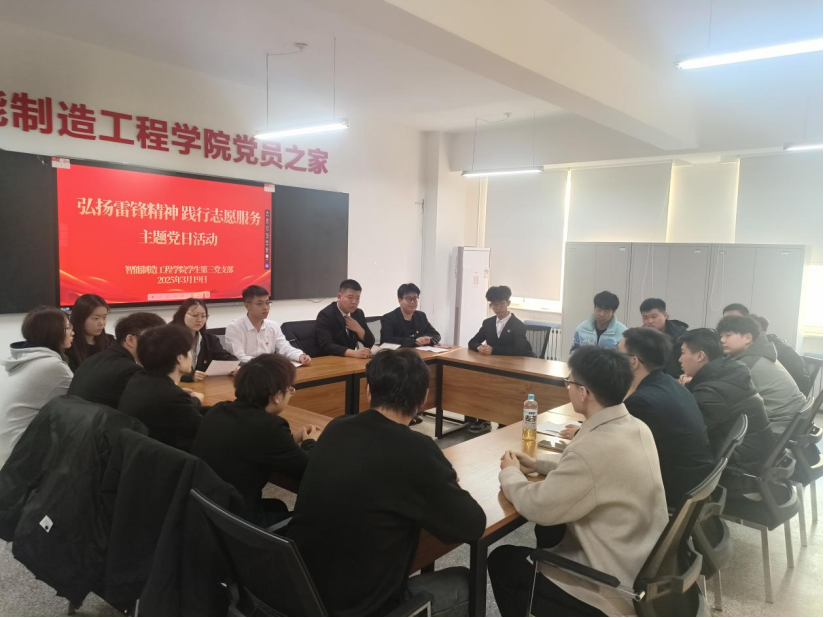 学生第二党支部书记张蕊雪以雷锋精神践行团为案例进行讨论分享。党员们认真观看雷锋精神践行团不断创新的活动形式和内容,对雷锋精神进行了生动诠释,通过分享实践活动,激励青年学子将雷锋精神融入职业理想,不断提升岗位技能,在专业领域深耕的同时传递温暖与正能量。将雷锋精神与实践相结合,不仅要学好专业技能,更要用所学技能服务社会。用心聆听雷锋故事,深入学习雷锋精神。