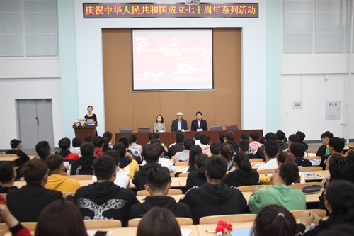 9月20日,由校组织部主办,机电与汽车工程学院党总支承办的庆祝中华人民共和国成立七十周年系列活动之“毛主席五幅龙江题词的由来背景和现实意义——毛泽东与黑龙江”主题报告会在我校学生文化活动中心举行。