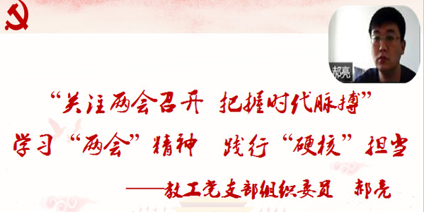 活动中,郝亮同志向与会教师党员介绍了疫情下召开全国“两会”的重要意义,并带领全体教师党员共同回顾、学习了“两会”会议议程,“两会”看点前瞻(七个“非常”之策)等内容。他指出,作为高校教师,我们要认真学习、领悟“两会”精神,让自己的思想与党中央保持高度一致。同时,在我校常态化疫情防控工作开展的过程中,要充分发挥教师党员先锋模范作用,建立关爱学生、服务大局的整体意识,助力我校整体疫情防控工作。之后,郝亮老师带领全体教师党员共同学习了党风廉政建设、师德师风建设的相关规章制度。