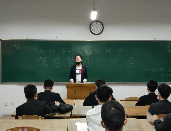 最后,辅导员史澈老师对同学们的交流发言进行了总结讲话,她表示同学们在交流过程中,思想积极要求进步,对党的发展史理解深刻、独到,对与会的44名入党积极分子学习成果给予肯定。她对全体学员提出四点要求:一是持续加强理论学习,坚定理想信念;二是端正入党动机,不断提升党性修养;三是坚持学以致用,以党风带动学风;四是不断提高政治站位,主动接受党组织的教育和考验,时刻发挥先锋模范作用,以实际行动争取早日入党。
