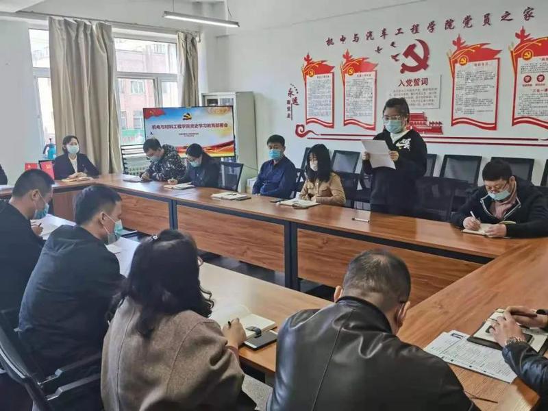 为深入学习贯彻习近平总书记在党史学习教育动员大会上的重要讲话精神,按照学校党史学习教育动员部署会的精神要求,扎实推进党史学习教育,4月8日,机电与材料工程学院在教四208党员之家召开党史学习教育部署会议,校长助理兼机电学院院长李长威、机电学院党总支书记王郁黎、机电学院全体教师党员和学生党员代表参加会议,会议由机电学院党总支组织委员金文雯主持。