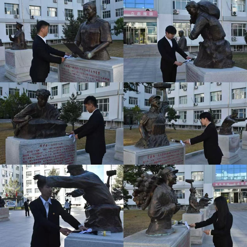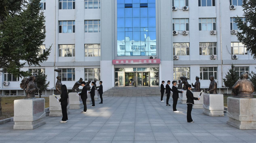 "鉴往可以知来,见始足以知终。"智能学子们在学校东北抗联英雄群雕前肃立,青铜铸造的战士们保持着冲锋的姿势,仿佛仍在守护着这片黑土地。晨光中,学生代表们垂首默哀,手持白菊、紧握右拳,在秋风中许下"强国有我"的铮铮誓言。这些年轻的身影与青铜雕像在晨光中构成一幅跨越时空的对话图景,历史的回响与当代的誓言在此刻交融,见证着红色基因在新一代青年血脉中的传承与延续。