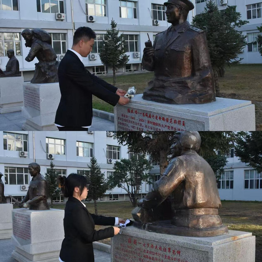 学生代表宁硕凝视着英雄雕像,泪水模糊了双眼,青铜铸造的面容仿佛在晨光中鲜活起来。"我仿佛听见了烈士们'还我河山'的呐喊,看到了他们冒着炮火前进的身影。"他的声音微微发颤,却依然保持着挺拔的军姿。不远处,一位女生正将菊花轻轻放在雕像前,静默伫立,花瓣上的晨露闪烁着晶莹的光芒,宛若永不干涸的泪滴,映照着当代青年对先烈最深切的缅怀。
