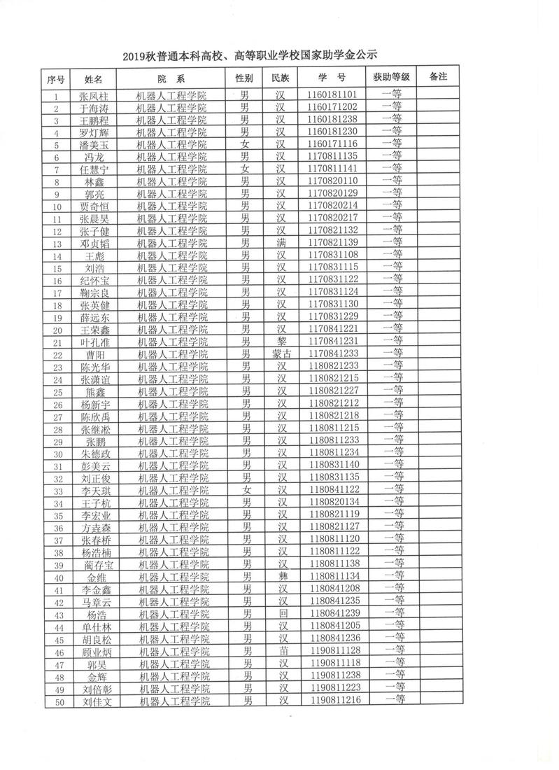 2019秋普通本科高校、高等职业学校国家助学金公示