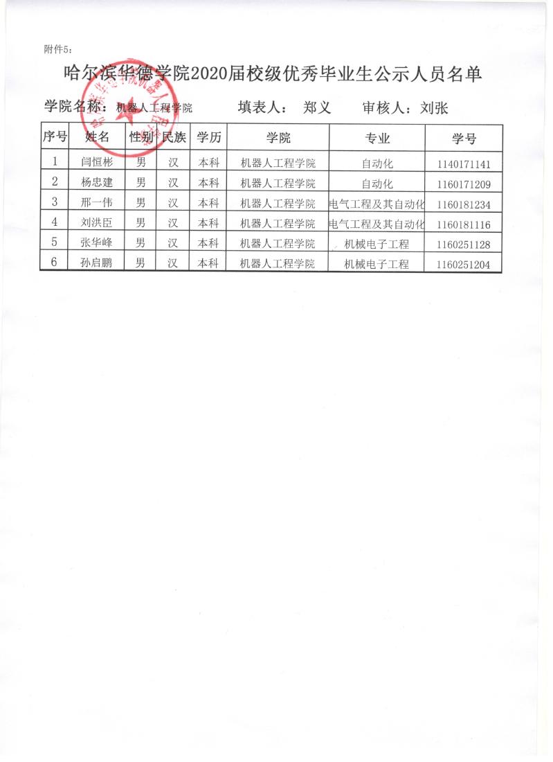 澳门电子pg游戏官网2020届校级优秀毕业生公示人员名单