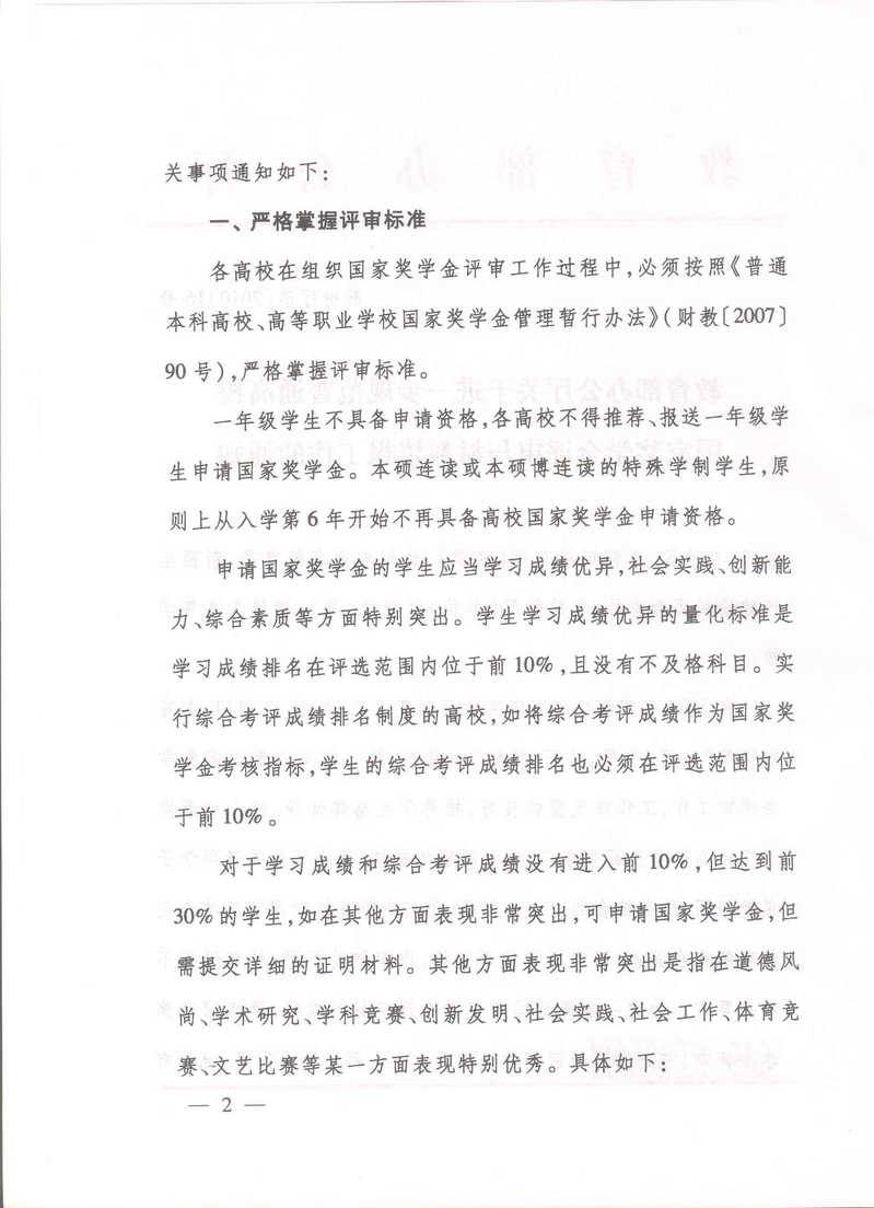教育部办公厅关于进一步规范普通高校国家奖学金评审与材料填报工作的通知