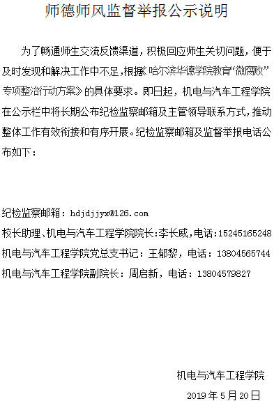 机电与汽车工程学院关于师德师风监督举报公示说明