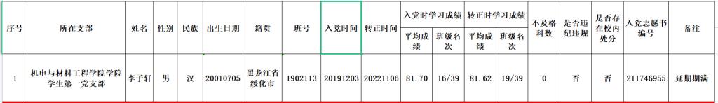 在听取党员和群众意见的基础上,经党支部委员会审查,拟将李子轩同志转为中共正式党员。根据发展党员工作有关要求,现将有关情况公示如下:
