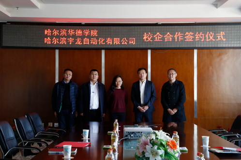 最后,顾鹂鸣副校长代表学校与哈尔滨宇龙自动化有限公司总经理赵金晓共同签署了《校企合作框架协议书》。