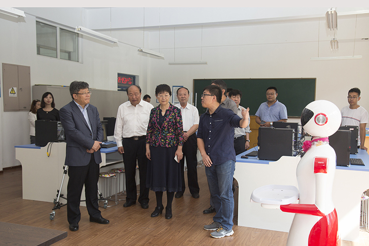 图为孙东生副省长在我院机器人研究所调研,他向教师了解机器人的功能类型,并鼓励教师树立综合化工程教育理念,推进学科专业交叉融合。按照陆昊省长的指示,加强对学生学习能力、创新创业意识、合理知识结构以及综合素质的培养。加强应用领域科研和成果转化、带动学生创新创业。